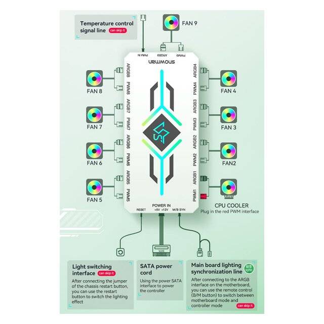 "name": "Snowman H9 ARGB Fan Hub / Controller (White)",