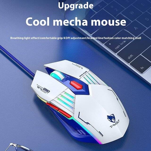 "name": "T‑Wolf G560 Wired Mouse (White/Blue)",