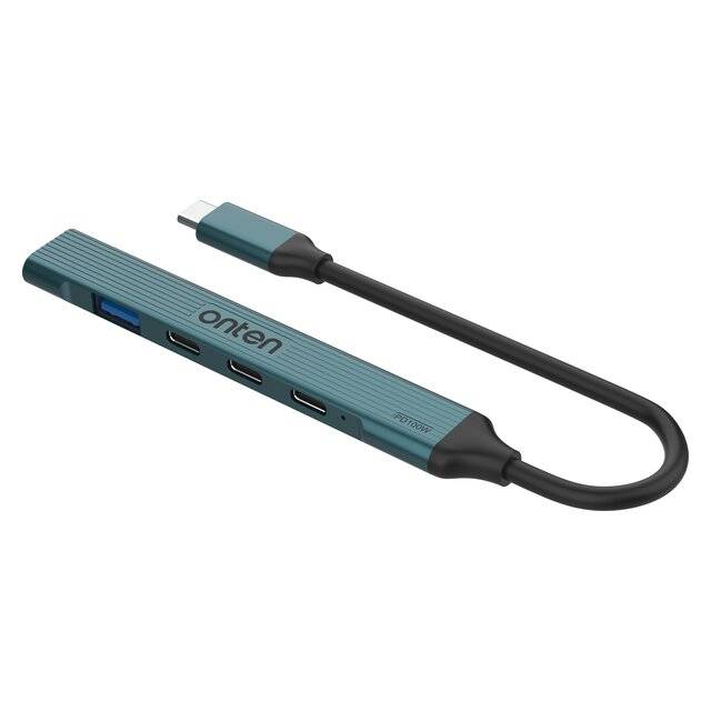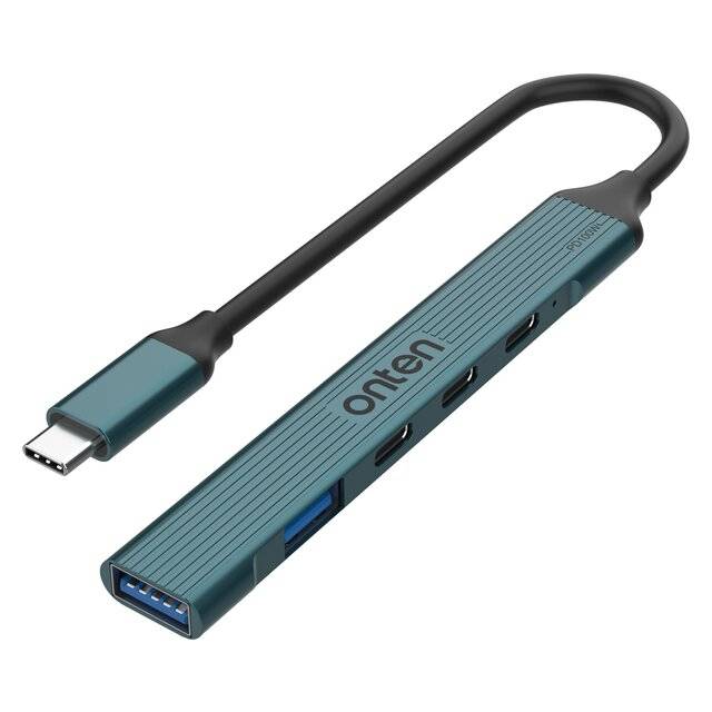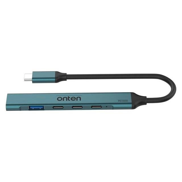 "description": "<h3>Key Attributes</h3>\n<ul>\n <li><strong>Model:</strong> Onten UC971</li>\n <li><strong>Product Type:</strong> Compact USB‑C Hub</li>\n <li><strong>Design:</strong> Aluminum body with Metallic Teal finish</li>\n <li><strong>USB‑C Input:</strong> 1 × USB‑C (PD 3.0 up to 100W)</li>\n <li><strong>USB‑A Ports:</strong> \n - 1 × USB‑A 3.0 (5 Gbps data) \n - 1 × USB‑A 2.0 (mouse/keyboard)\n </li>\n <li><strong>USB‑C Ports:</strong> 2 × USB‑C 2.0 (power or sync)</li>\n <li><strong>Use Case:</strong> Mobile work, home setups, travel</li>\n</ul>",