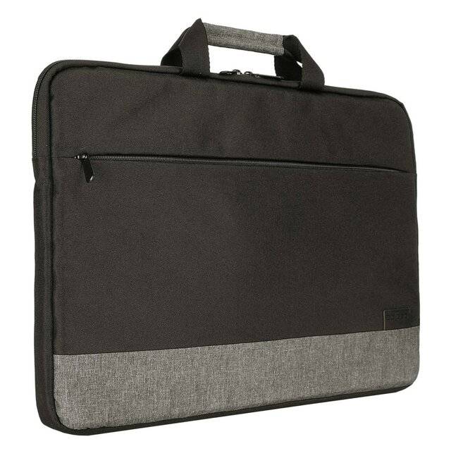 "description": "<ul>\n <li><strong>Compatibility:</strong> Fits laptops up to 15.6 inches</li>\n <li><strong>Design:</strong> Slim and lightweight for easy portability</li>\n <li><strong>Material:</strong> Modern grey fabric with sleek black accents</li>\n <li><strong>Storage:</strong> Easy-access front pocket for accessories and essentials</li>\n <li><strong>Carrying Options:</strong> Sturdy top handle for comfortable hand carrying</li>\n <li><strong>Use Cases:</strong> Ideal for business, travel, and daily commuting</li>\n</ul>",