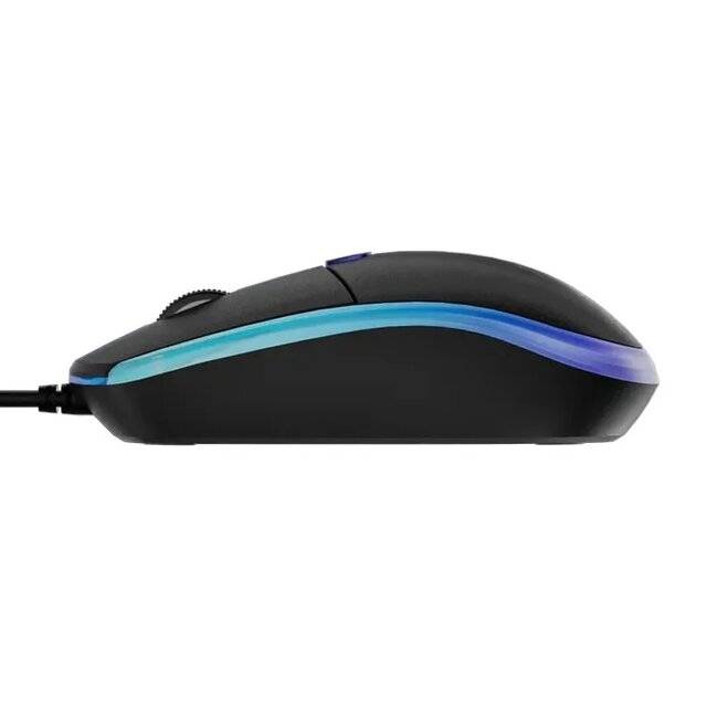 "description": "<h3>Key Attributes</h3>\n<ul>\n <li><strong>Scroll Wheel:</strong> Non‑slip and wear‑resistant for smooth, comfortable use</li>\n <li><strong>Backlight:</strong> Seven‑colour RGB effects</li>\n <li><strong>Built‑in Weights:</strong> Adjustable for improved stability and accuracy</li>\n <li><strong>Ergonomics:</strong> Arch‑shaped design for excellent grip and reduced fatigue</li>\n <li><strong>Buttons:</strong> Wired mouse with 3 buttons</li>\n <li><strong>DPI:</strong> 1200 DPI precision movement</li>\n <li><strong>Use Case:</strong> Suitable for office work and gaming</li>\n</ul>",