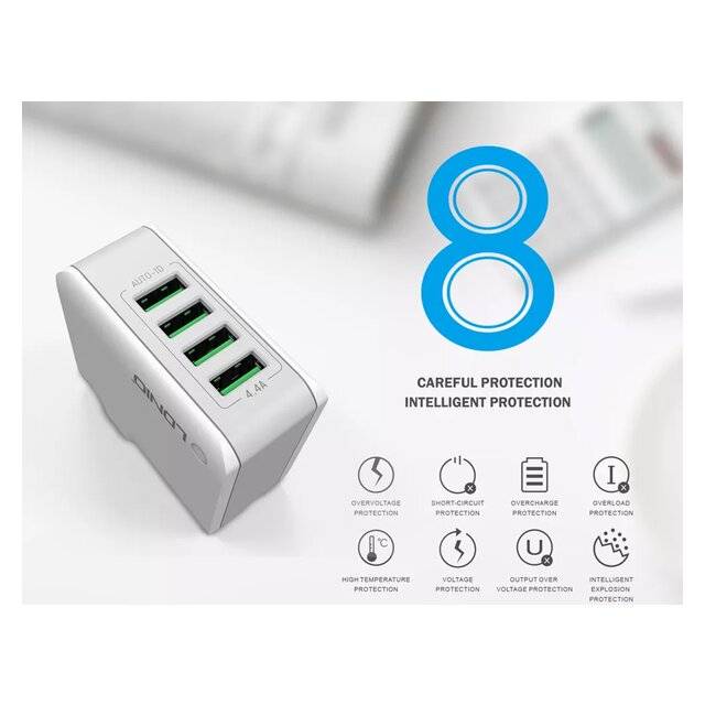 "description_ar": "<div dir=\"ltr\"><ul>\n <li><strong>Model Number:</strong> A4403</li>\n <li><strong>Port:</strong> 4 × USB</li>\n <li><strong>Output:</strong> 5V / 4.4A (Auto Max)</li>\n <li><strong>Input:</strong> 12–24V / 2.4A</li>\n <li><strong>Output Power:</strong> 22W</li>\n <li><strong>Functions:</strong> QC2.0, QC3.0</li>\n <li><strong>Protection:</strong> Short Circuit, OVP, OTP, OLP, OCP, Low Tension, Over-charging, Overcurrent, Overvoltage</li>\n <li><strong>Usage:</strong> Mobile Phone, Smart Watch, Universal</li>\n <li><strong>Type:</strong> Electric, USB Wall Charger, Power Supply Adapter, Universal Adapter, Fast Charger</li>\n <li><strong>Material:</strong> PC Fireproof Material, ABS</li>\n <li><strong>Feature:</strong> Foldable</li>\n <li><strong>Private Mold:</strong> Yes</li>\n <li><strong>Place of Origin:</strong> Guangdong, China</li>\n <li><strong>Plug Options:</strong> US / UK / EU</li>\n</ul>\n</div>",
