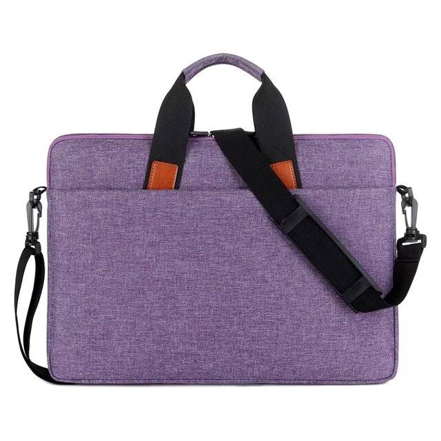 "description": "<h3>Key Features</h3>\n<ul>\n <li>Suitable for laptop sizes: 14\", 15\", 15.6\"</li>\n <li>Multiple compartments (one main compartment + additional exterior pocket)</li>\n <li>Carrying handle for comfortable transport</li>\n <li>Includes a shoulder strap for easy carrying</li>\n <li>Can be attached to a suitcase handle</li>\n <li>Ultra‑slim design with maximum functionality</li>\n <li>Additional faux‑leather patches enhance aesthetics and improve grip</li>\n</ul>",
