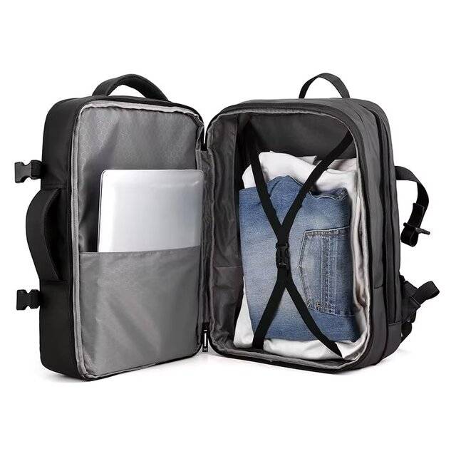 "description": "<h3>Key Features</h3>\n<ul>\n <li><strong>Carry‑On Size 45 × 36 × 20 cm:</strong> Designed to meet easyJet’s free cabin baggage allowance exactly (45 × 36 × 20 cm / 32 L). Also suitable as an under‑seat backpack and accepted by most major airlines including British Airways, Etihad, Emirates, Delta, Lufthansa, KLM, Qatar, Wizz Air, and more.</li>\n\n <li><strong>Expandable Capacity:</strong> Expands from 20 cm to 25 cm in depth, increasing total volume from 32 L to 40 L (45 × 36 × 25 cm). Includes:\n <ul>\n <li>2 front zip pockets</li>\n <li>1 main compartment with open pocket + 2 pen slots</li>\n <li>1 middle compartment with luggage strap for securing contents</li>\n <li>1 large compartment with 2 padded laptop sleeves for devices up to 17 inches</li>\n </ul>\n </li>\n\n <li><strong>USB Charging Port:</strong> Built‑in USB port and internal cable for convenient device charging on the go. Simply connect a power bank inside (not included) and plug your device into the external USB port.</li>\n\n <li><strong>Multiple Carrying Options:</strong> Features a top handle for hand‑carry, breathable padded shoulder straps for backpack use, and a rear luggage strap for attaching to a trolley handle—ideal for hands‑free travel.</li>\n\n <li><strong>Durable & Lightweight:</strong> Made from tear‑resistant, waterproof coated fabric with a high‑quality metal zipper. Easy to clean, lightweight, and spacious enough for all travel essentials.</li>\n\n <li><strong>Perfect Gift Choice:</strong> Suitable for men, women, and students. Ideal for travel, school, business trips, and daily commuting.</li>\n</ul>",