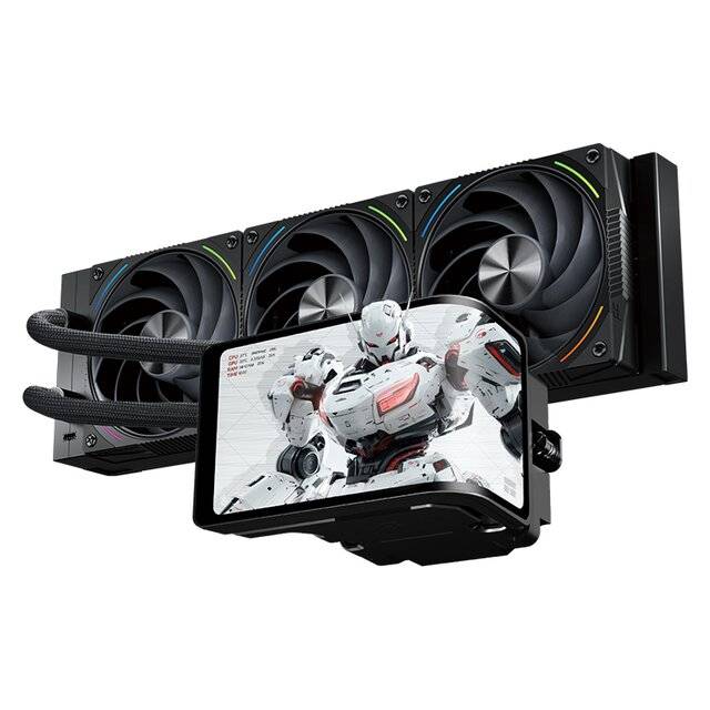 "description": "<ul>\n<li>Intel:LGA115X/1200/1700/1851/2011/2066</li>\n<li>AMD:AM4/AM5</li>\n</ul>\n<h3>Specification:</h3>\n<ul>\n<li>Pump Dimensions:L85 mm x W74 mm x H65 mm</li>\n<li>Radiator Fimensions:L397 mm x W120 mm x H27 mm</li>\n<li>Pump Rated Speed:3000 RPM±10% (MAX)</li>\n<li>Screen Size:3.5-Inch</li>\n<li>Screen Resolution:640×480</li>\n<li>Pump Rated Voltage:12V DC</li>\n<li>Connector:4 PIN PWM</li>\n<li>Radiator:Aluminum</li>\n</ul>\n<h3>Product Description:</h3>\n<ul>\n<li>Dimension:L360 mm x W120 mm x H25 mm</li>\n<li>Rated Speed:2150 RPM±10% (MAX)</li>\n<li>Noise Level:27 dBA (MAX)</li>\n<li>Air Flow:69×3 CFM (MAX)</li>\n<li>Air Pressure:2.87 mm H2O (MAX)</li>\n<li>Connector:4 PIN PWM</li>\n<li>ARGB Connector:3 PIN 5V</li>\n<li>Bearing Type:S-FDB V2 Bearing</li>\n</ul>",