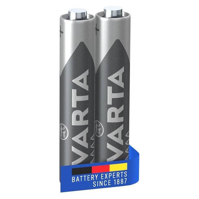 "description": "<ul>\n <li><strong>Size:</strong> AAA</li>\n <li><strong>Range:</strong> VARTA Energy</li>\n <li><strong>Electrochemical System:</strong> Alkaline</li>\n <li><strong>Rated Voltage:</strong> 1.5 V</li>\n <li><strong>Rechargeable:</strong> No</li>\n <li><strong>Diameter:</strong> 10.5 mm</li>\n <li><strong>Length:</strong> 44.5 mm</li>\n</ul>",