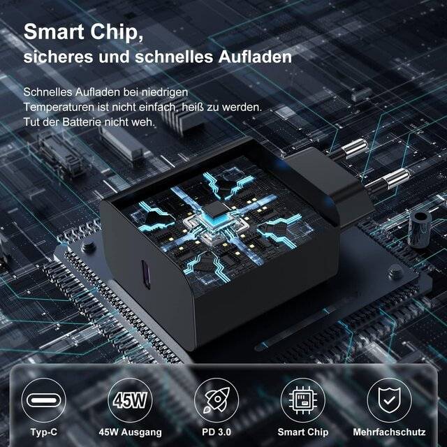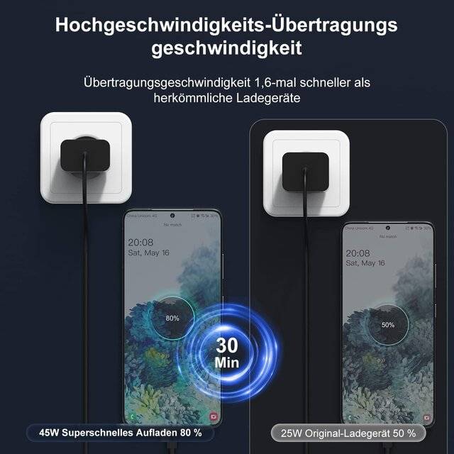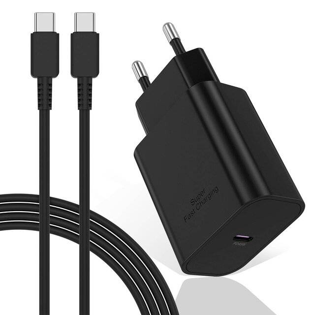 "description": "<h3>Specifications</h3>\n<ul>\n <li><strong>Product Type:</strong> Samsung 45W Super Fast USB-C Wall Charger</li>\n <li><strong>Output Power:</strong> 45W (PD 3.0 fast charging)</li>\n <li><strong>Charging Speed:</strong> Charges Samsung Galaxy S23/S22/S20 series from 0–100% in less than 1 hour</li>\n <li><strong>Efficiency:</strong> 3x faster than standard 15W chargers</li>\n <li><strong>Cable:</strong> 2 m (6.6 ft) USB-C cable, 60W capacity</li>\n <li><strong>Cable Output:</strong> Up to 5A, supports 480 Mbps data transfer</li>\n <li><strong>Voltage:</strong> 100–240 VAC</li>\n <li><strong>Safety Certification:</strong> CE certified, protection against short circuit, overheating, over-current, and overcharging</li>\n <li><strong>Compatibility:</strong> Samsung Galaxy S23/S22/S21/S20 series, Z Fold 3, Z Flip 3, Note 20 Ultra, S10 5G, Tab S7+/S8+/Ultra, iPhone 15 series, iPad, and other USB-C devices</li>\n <li><strong>Included:</strong> 1 × Samsung 45W charger, 1 × 2 m USB-C cable</li>\n</ul>\n\n<h3>Features</h3>\n<ul>\n <li>Superfast 45W charging with PD/PPS protocol for phones, tablets, and laptops</li>\n <li>2 m USB-C cable supports fast charging and high-speed data transfer</li>\n <li>Durable and portable design, ideal for travel, office, and home use</li>\n <li>Smart protection system ensures device safety and longevity</li>\n <li>Universal compatibility with Samsung Galaxy, iPhone, iPad, and other Type-C devices</li>\n</ul>",