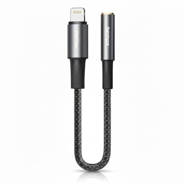 "description": "<h3>Specifications</h3>\n<ul>\n <li><strong>Model:</strong> Remax C22 (CB08)</li>\n <li><strong>Type:</strong> Lightning to 3.5 mm audio adapter cable</li>\n <li><strong>Cable Length:</strong> 0.12 m</li>\n <li><strong>Color:</strong> Velocity series (Black/Grey)</li>\n <li><strong>Material:</strong> Braided cable, reinforced connectors</li>\n <li><strong>Compatibility:</strong> iPhone/iPad with Lightning port</li>\n <li><strong>Function:</strong> Connects Lightning devices to 3.5 mm headphones/speakers</li>\n</ul>\n\n<h3>Features</h3>\n<ul>\n <li><strong>Clear audio:</strong> Stable transmission for music, podcasts, and calls</li>\n <li><strong>Durable build:</strong> Braided jacket and strain relief to resist wear</li>\n <li><strong>Compact size:</strong> 12 cm length for clean, tangle-free carry</li>\n <li><strong>Plug-and-play:</strong> No extra apps needed</li>\n</ul>\n\n<h3>Box contents</h3>\n<ul>\n <li><strong>Included:</strong> Remax C22 Lightning to 3.5 mm adapter cable (0.12 m)</li>\n</ul>",