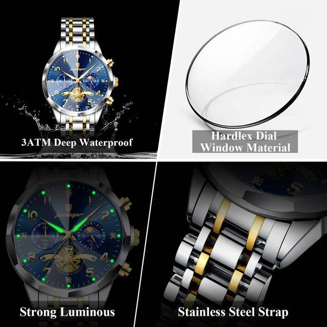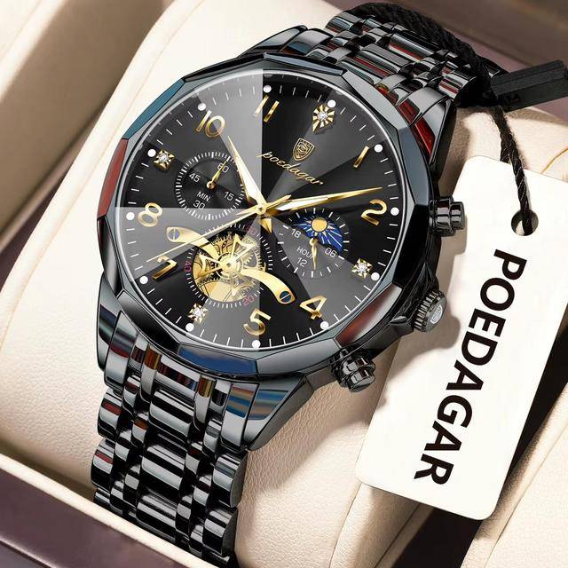 "description": "<ul>\n <li>Brand Name: Poedagar</li>\n <li>Model Number: 939</li>\n <li>Year of Production: 2025</li>\n <li>Gender: Men</li>\n <li>Case Shape: Round</li>\n <li>Material: Stainless Steel</li>\n <li>Band Material Type: Stainless Steel</li>\n <li>Case Material: Alloy</li>\n <li>Dial Window Material Type: Hardlex</li>\n <li>Dial Display: Pointer</li>\n <li>Clasp Type: Push Button Hidden Clasp</li>\n <li>Movement: Quartz</li>\n <li>Movement Brand: Chenlong</li>\n <li>Feature: Chronograph, Luminous, Waterproof</li>\n <li>Style: Business, Casual, Luxury</li>\n <li>Type: Antique, Business, Fashion, Luxury</li>\n <li>Band Length: 23 cm</li>\n <li>Band Width: 20 mm</li>\n <li>Case Thickness: 14 mm</li>\n <li>Dial Diameter: 42 mm</li>\n <li>Water Resistance Depth: 3 bar</li>\n <li>Weight: 119 g</li>\n <li>Warranty: 1 Year</li>\n <li>Boxes Included: Yes</li>\n <li>Place of Origin: China</li>\n</ul>",