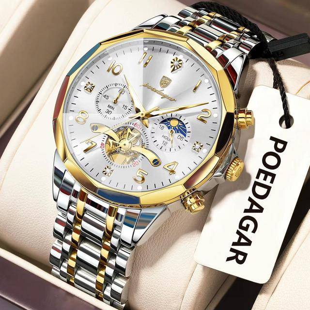 "description": "<ul>\n <li>Brand Name: Poedagar</li>\n <li>Model Number: 939</li>\n <li>Year of Production: 2025</li>\n <li>Gender: Men</li>\n <li>Case Shape: Round</li>\n <li>Material: Stainless Steel</li>\n <li>Band Material Type: Stainless Steel</li>\n <li>Case Material: Alloy</li>\n <li>Dial Window Material Type: Hardlex</li>\n <li>Dial Display: Pointer</li>\n <li>Clasp Type: Push Button Hidden Clasp</li>\n <li>Movement: Quartz</li>\n <li>Movement Brand: Chenlong</li>\n <li>Feature: Chronograph, Luminous, Waterproof</li>\n <li>Style: Business, Casual, Luxury</li>\n <li>Type: Antique, Business, Fashion, Luxury</li>\n <li>Band Length: 23 cm</li>\n <li>Band Width: 20 mm</li>\n <li>Case Thickness: 14 mm</li>\n <li>Dial Diameter: 42 mm</li>\n <li>Water Resistance Depth: 3 bar</li>\n <li>Weight: 119 g</li>\n <li>Warranty: 1 Year</li>\n <li>Boxes Included: Yes</li>\n <li>Place of Origin: China</li>\n</ul>",