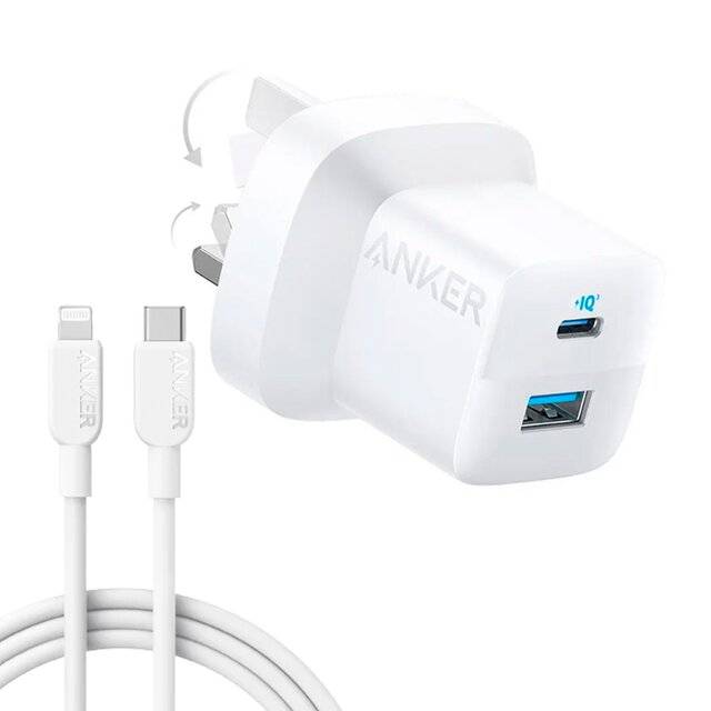 "description": "<h3>Product Overview</h3>\n<ul>\n <li><strong>Product Name:</strong> Anker 323 Charger with 310 USB‑C to Lightning Cable (33W, 3 ft)</li>\n <li><strong>Brand & Series:</strong> ANKER — The World’s No.1 Mobile Charging Brand, Series 3</li>\n</ul>\n\n<h3>Compatibility</h3>\n<ul>\n <li><strong>Made for:</strong> iPhone, iPad, iPod</li>\n <li><strong>Also Compatible With:</strong> Apple phones/tablets, Samsung phones/tablets, and other USB‑C/USB‑A devices</li>\n</ul>\n\n<h3>Charging Output</h3>\n<table>\n <tr>\n <td><strong>USB‑C Port</strong></td>\n <td>20W Power Delivery</td>\n </tr>\n <tr>\n <td><strong>USB‑A Port</strong></td>\n <td>12W Output</td>\n </tr>\n <tr>\n <td><strong>Total Power</strong></td>\n <td>33W</td>\n </tr>\n</table>\n\n<h3>Features</h3>\n<ul>\n <li><strong>Foldable Plug:</strong> Compact and travel‑friendly</li>\n <li><strong>Power Delivery (PD):</strong> Fast charging for supported devices</li>\n <li><strong>Included Cable:</strong> 3 ft USB‑C to Lightning (310 series)</li>\n <li><strong>Original Product Seal:</strong> Includes authenticity QR code</li>\n</ul>",