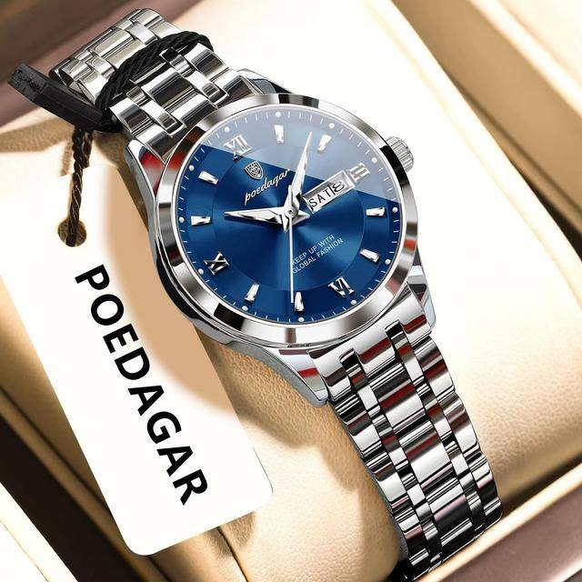 "description_ar": "<div dir=\"ltr\"><ul>\n <li>Brand Name: Poedagar</li>\n <li>Model Number: 503</li>\n <li>Year of Production: 2025</li>\n <li>Gender: Women</li>\n <li>Case Shape: Round</li>\n <li>Material: Stainless Steel</li>\n <li>Band Material Type: Stainless Steel</li>\n <li>Case Material: Alloy</li>\n <li>Dial Window Material Type: Hardlex</li>\n <li>Dial Display: Pointer</li>\n <li>Clasp Type: Push Button Hidden Clasp</li>\n <li>Movement: Quartz</li>\n <li>Movement Brand: Chenlong</li>\n <li>Feature: Day/Date, Luminous, Water Resistant, Waterproof</li>\n <li>Style: Casual, Business, Luxury</li>\n <li>Type: Antique, Charm, Fashion, Luxury</li>\n <li>Band Length: 20 cm</li>\n <li>Band Width: 20 mm</li>\n <li>Case Thickness: 11 mm</li>\n <li>Dial Diameter: 32 mm</li>\n <li>Water Resistance Depth: 3 bar</li>\n <li>Weight: 78 g</li>\n <li>Warranty: 1 Year</li>\n <li>Boxes Included: Yes</li>\n <li>Place of Origin: China</li>\n</ul></div>",