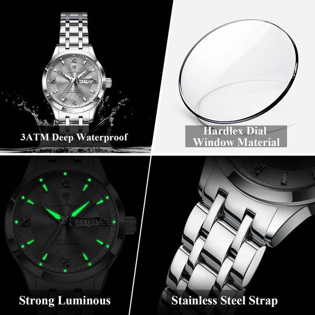 "description": "<ul>\n <li>Brand Name: Poedagar</li>\n <li>Model Number: 503</li>\n <li>Year of Production: 2025</li>\n <li>Gender: Women</li>\n <li>Case Shape: Round</li>\n <li>Material: Stainless Steel</li>\n <li>Band Material Type: Stainless Steel</li>\n <li>Case Material: Alloy</li>\n <li>Dial Window Material Type: Hardlex</li>\n <li>Dial Display: Pointer</li>\n <li>Clasp Type: Push Button Hidden Clasp</li>\n <li>Movement: Quartz</li>\n <li>Movement Brand: Chenlong</li>\n <li>Feature: Day/Date, Luminous, Water Resistant, Waterproof</li>\n <li>Style: Casual, Business, Luxury</li>\n <li>Type: Antique, Charm, Fashion, Luxury</li>\n <li>Band Length: 20 cm</li>\n <li>Band Width: 20 mm</li>\n <li>Case Thickness: 11 mm</li>\n <li>Dial Diameter: 32 mm</li>\n <li>Water Resistance Depth: 3 bar</li>\n <li>Weight: 78 g</li>\n <li>Warranty: 1 Year</li>\n <li>Boxes Included: Yes</li>\n <li>Place of Origin: China</li>\n</ul>",