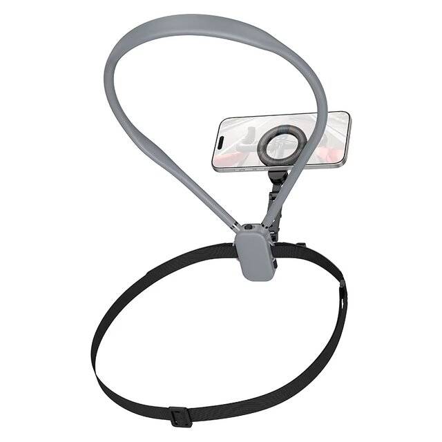 "description": "<h3>Specifications</h3>\n<ul>\n <li><strong>Compatibility:</strong> Phones with ring‑shaped magnetic array or compatible cases; includes metal plate for non‑magnetic devices (1.8 kg magnetic pull force); supports 1/4‑inch screw sports cameras</li>\n <li><strong>Usage Scenarios:</strong> Live streaming, photography, cycling, fishing, and more</li>\n <li><strong>Recording Style:</strong> First‑person view; adjustable and rotatable; includes chest strap for added stability</li>\n <li><strong>Quick Release:</strong> One‑button mechanism for easy installation and removal (clamp stand and neckband)</li>\n <li><strong>Material:</strong> Aluminum alloy + ABS + silicone + spring steel core</li>\n <li><strong>Neckband Length:</strong> 69 cm ± 0.5 mm</li>\n <li><strong>Total Size:</strong> 480 × 235 × 50 mm</li>\n <li><strong>Weight:</strong> 275 g (without strap)</li>\n</ul>",