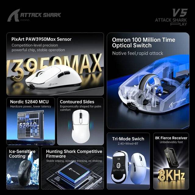 "name": "Attack Shark V5 Wired‑2.4G‑BT Mouse (Black)",