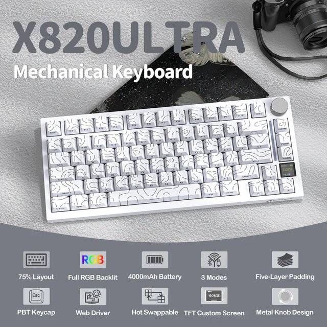 "name": "Attack Shark X820 Ultra [Tri-Mode] Keyboard (Starlight White Shark Switch)",