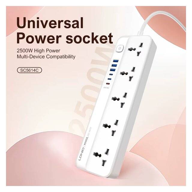 "name": "LDNIO SC5614C‑2M 2500W 3USB‑C 3USB‑A 5‑Power Socket",