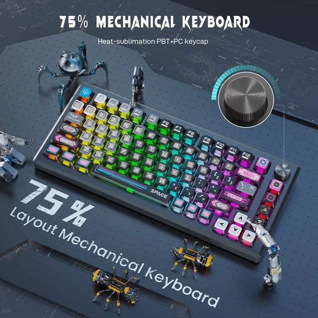 "description": "<h3>Key Specifications</h3>\n\n<ul>\n <li><strong>Build Quality:</strong> High‑precision CNC‑machined aluminum alloy body</li>\n <li><strong>Connectivity:</strong> Multi‑device support via USB‑C, Bluetooth, and 2.4 GHz</li>\n <li><strong>Hot‑Swap Support:</strong> Compatible with all 3‑pin and 5‑pin switches</li>\n <li><strong>Mounting Style:</strong> Gasket‑mounted for cushioned, fatigue‑free typing</li>\n <li><strong>Keycaps:</strong> Fade‑resistant PBT with side‑engraved legends</li>\n <li><strong>Metal Knob:</strong> Customizable knob for volume and RGB control</li>\n</ul>",
