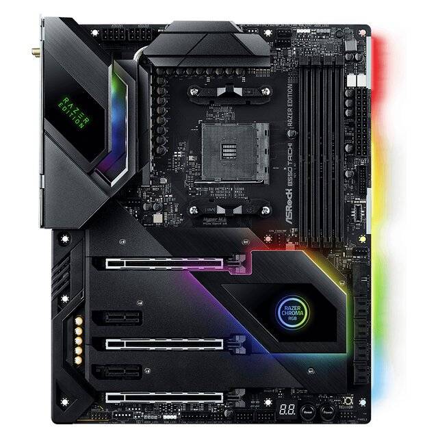 "description": "<ul>\n<li>Supports AMD AM4 Socket Ryzen™ 3000, 4000 G-Series, 5000 and 5000 G-Series Desktop Processors*</li>\n<li>16 Power Phase Design, Digi Power, Dr. MOS</li>\n<li>Supports DDR4 5200+ (OC)</li>\n<li>3 PCIe 4.0/3.0x16, 2 PCIe 3.0 x1</li>\n<li>Graphics Output Options: HDMI, DisplayPort</li>\n<li>AMD 3-Way CrossFireX™</li>\n<li>7.1 CH HD Audio (Realtek ALC1220 Audio Codec), Nahimic Audio</li>\n<li>8 SATA3, 1 Hyper M.2 (PCIe Gen4x4), 1 Ultra M.2 (PCIe Gen3x4 & SATA3)</li>\n<li>3 USB 3.2 Gen2 (Rear Type A+C, Front Type-C), 8 USB 3.2 Gen1 (4 Front, 4 Rear)</li>\n<li>Killer E3100X 2.5G LAN, Killer AX1650x Wi-Fi 6 802.11ax (2.4Gbps) + BT 5.2</li>\n<li>Supports Razer Chroma</li>\n</ul>\n<p><a href=\"https://www.asrock.com/mb/AMD/B550%20Taichi%20Razer%20Edition/Specification.asp#Specification\" target=\"_blank\">Read Specs</a></p>",